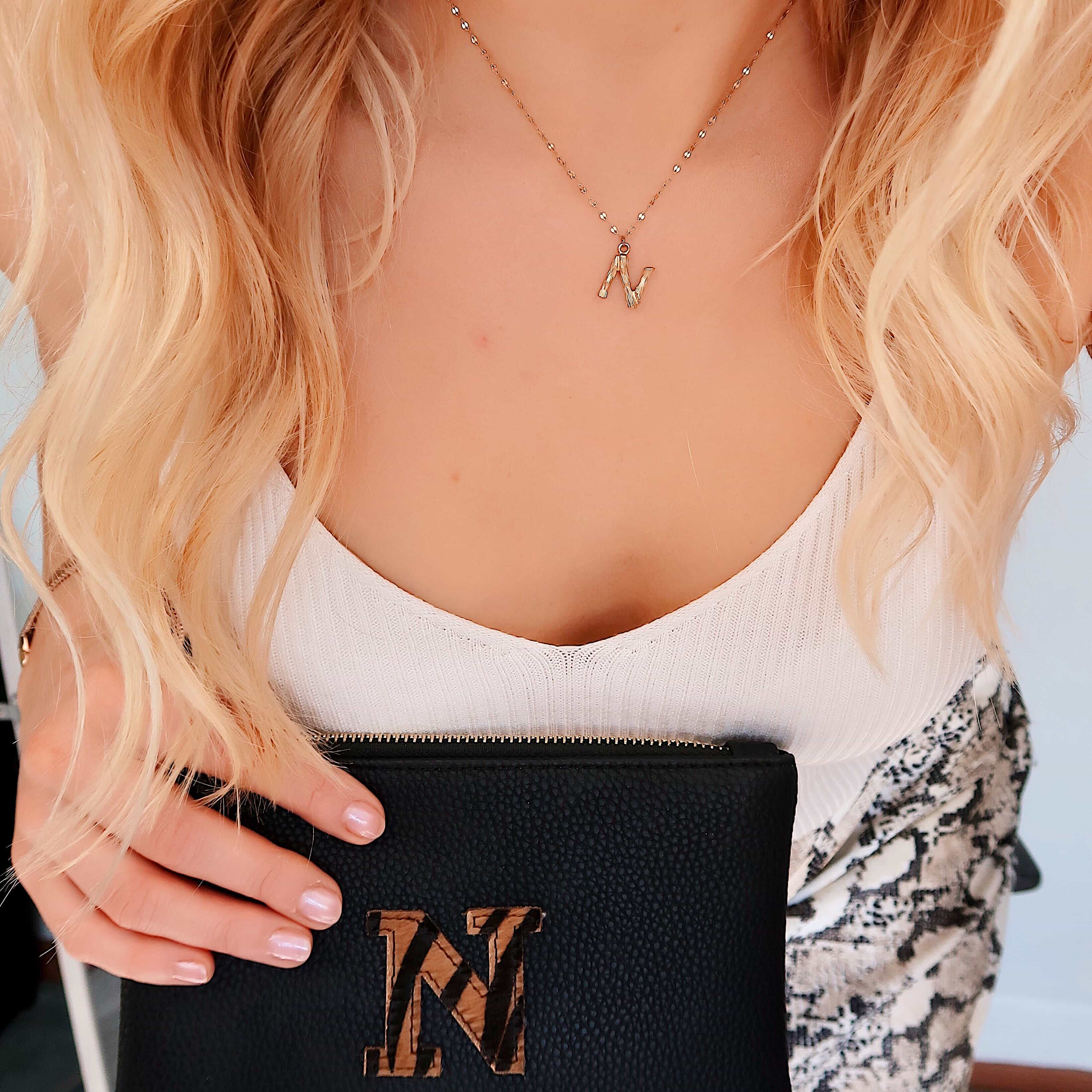 While previous seasons flirted with monograms or full-name lettering, this summer we will see plenty of single-letter jewellery. The fun part is it doesn’t have to be your initials, pick something sentimental like your partners or a loved one. Pick a bold piece to wear as a necklace, earrings or even a clutch—it adds a cool sense of individuality to any outfit. Clutch and necklace below by SHEIKE.