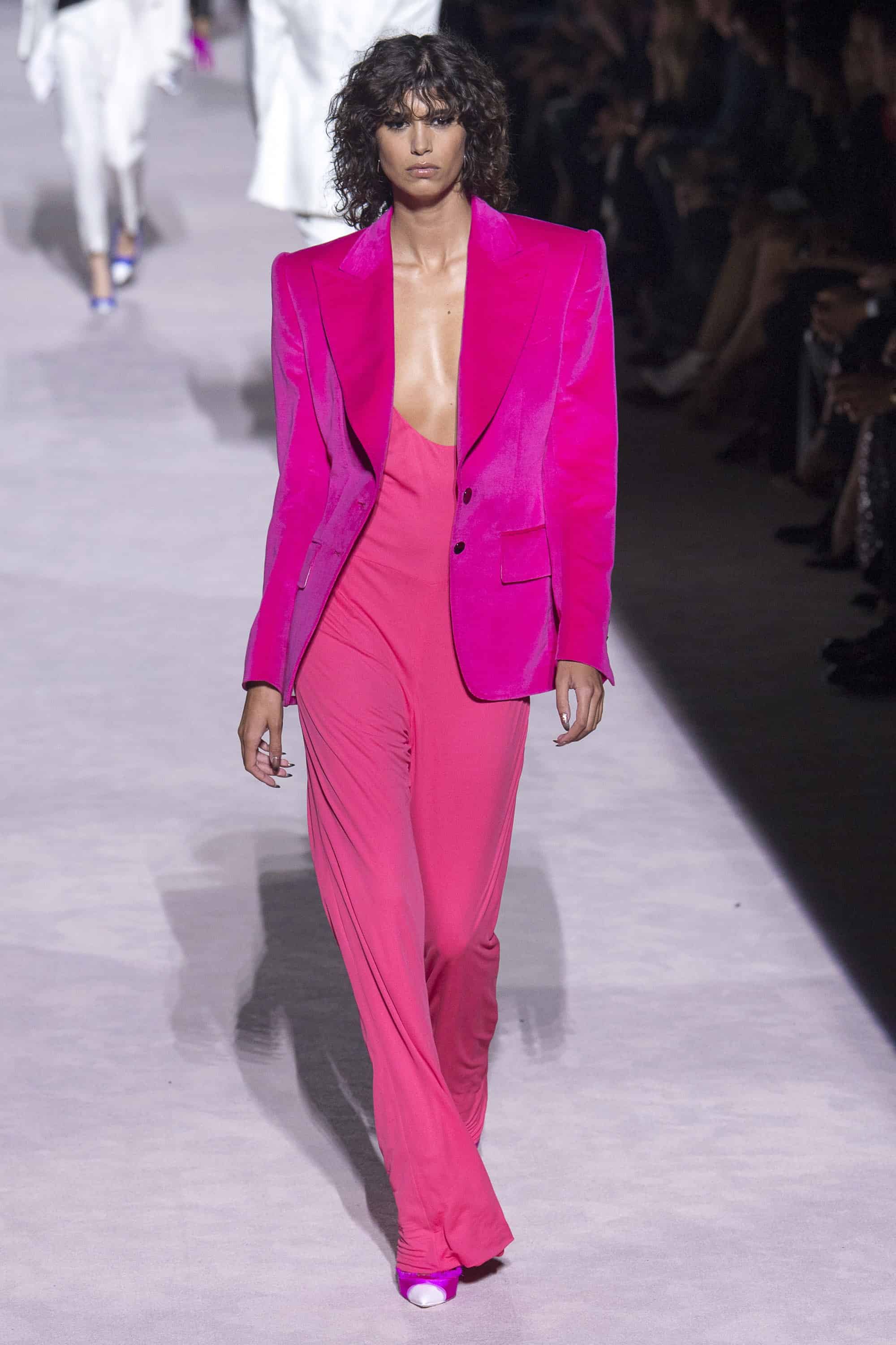 According to various high-profile sources, invitation to this year’s Tom Ford show came with his new perfume – Fucking Fabulous. A perfect introduction to his new collection. Ford looked to his men’s collection for inspiration for the female line – and I’m definitely not mad. Sharp silhouettes, perfectly tailored garments and unorthodox materials. Hello pink velvet suits and broad shoulder blazers.