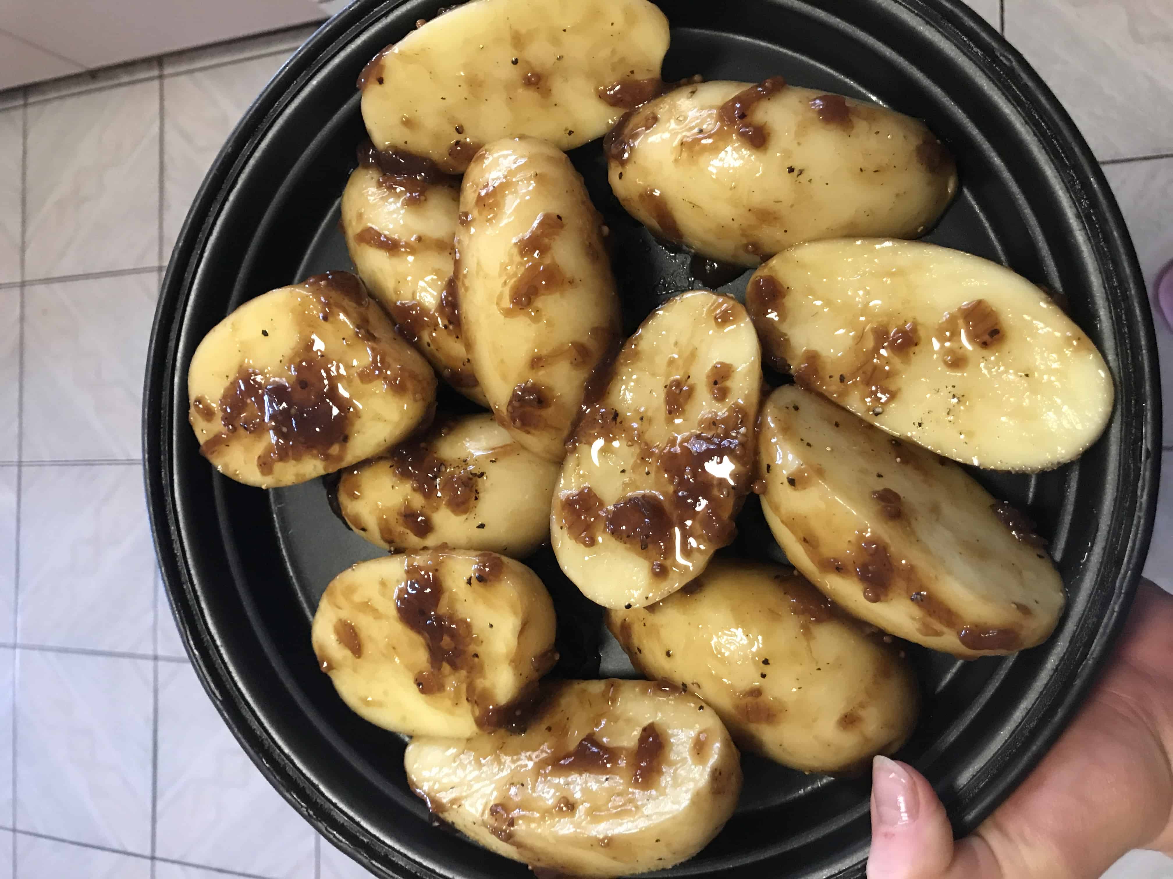 - Once there is about an hour left of cooking, place chopped potatoes in the oven. I covered ours with the left over caramelised onion relish, salt and pepper.See my pics below for some cooking inspiration. ENJOY!