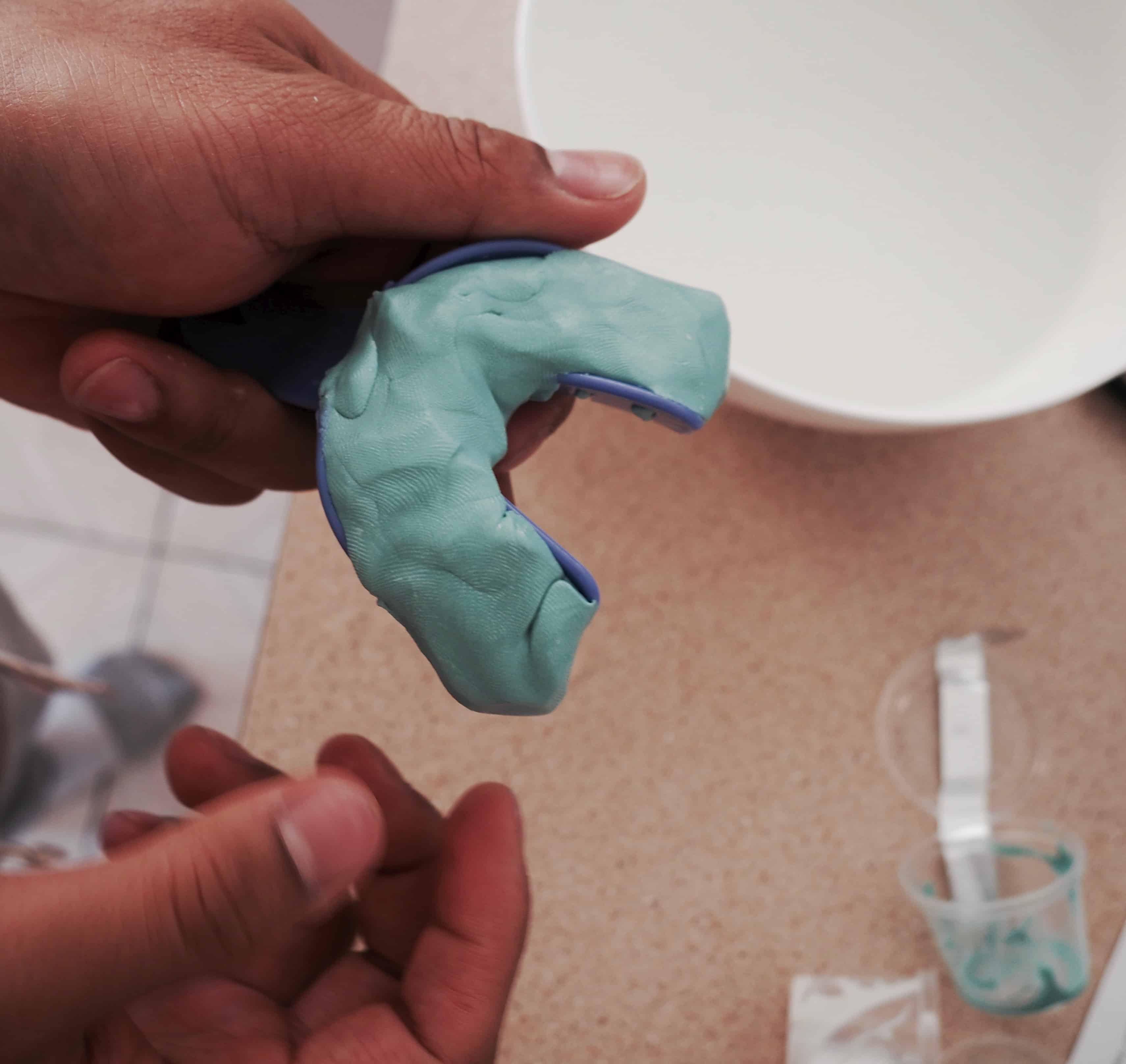 With putty in each hand, we began the most important step – making sure the retainer is as accurate as possible. Luckily, there was room for errors as The Knight Guard provided spare putty in case of mistakes. We loaded the tray with putty and Franky firmly bit down and held it tight for approximately two minutes. Afterwards, this mould was rinsed with a bit of cold water and placed into a provided airtight plastic bag and a reply paid postage box – ready to be sent back to the lab! The whole process was so easy and I loved the free postage! These guys thought of everything.